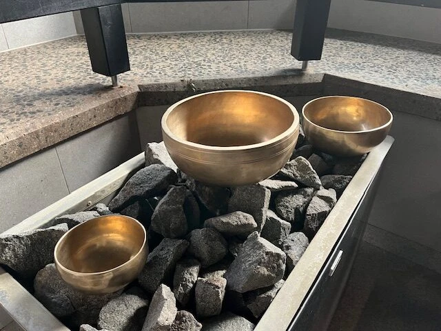 Äänimaljasaunan aikana pääset nauttimaan saunan lämmöstä sekä äänimaljojen ja kellojen täyttämästä sointukylvystä. Lauteilla istutaan rennosti uima-asu päällä ja löylyn tunnelmaa lisäävät saunassa sekä suihkutilassa soivat äänimaljat, sadekepit tai -rummut.